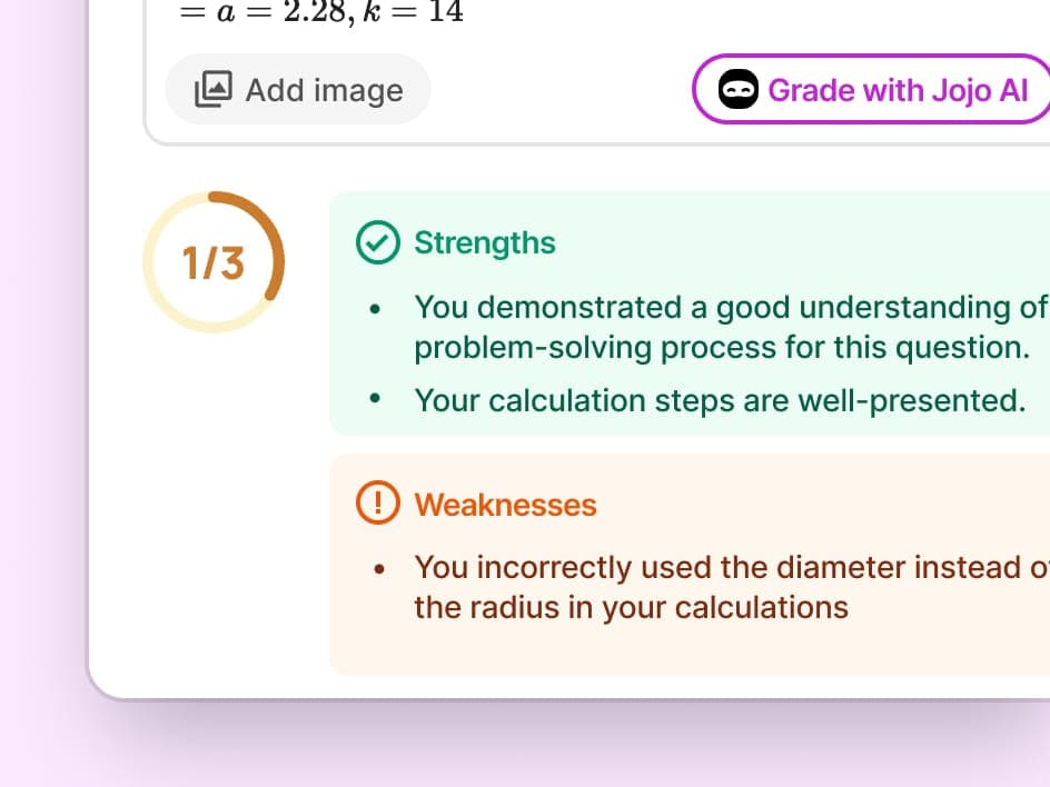 Jojo AI Alinstantly grades your answers and provides feedback in line with the mark scheme.